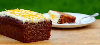 Remove from oven, allowing Cake to cool in the loaf tin for approximately 10 minutes before removing it out the tin, to cool completely on a wire rack; ready to cover with an orange zest frosting.