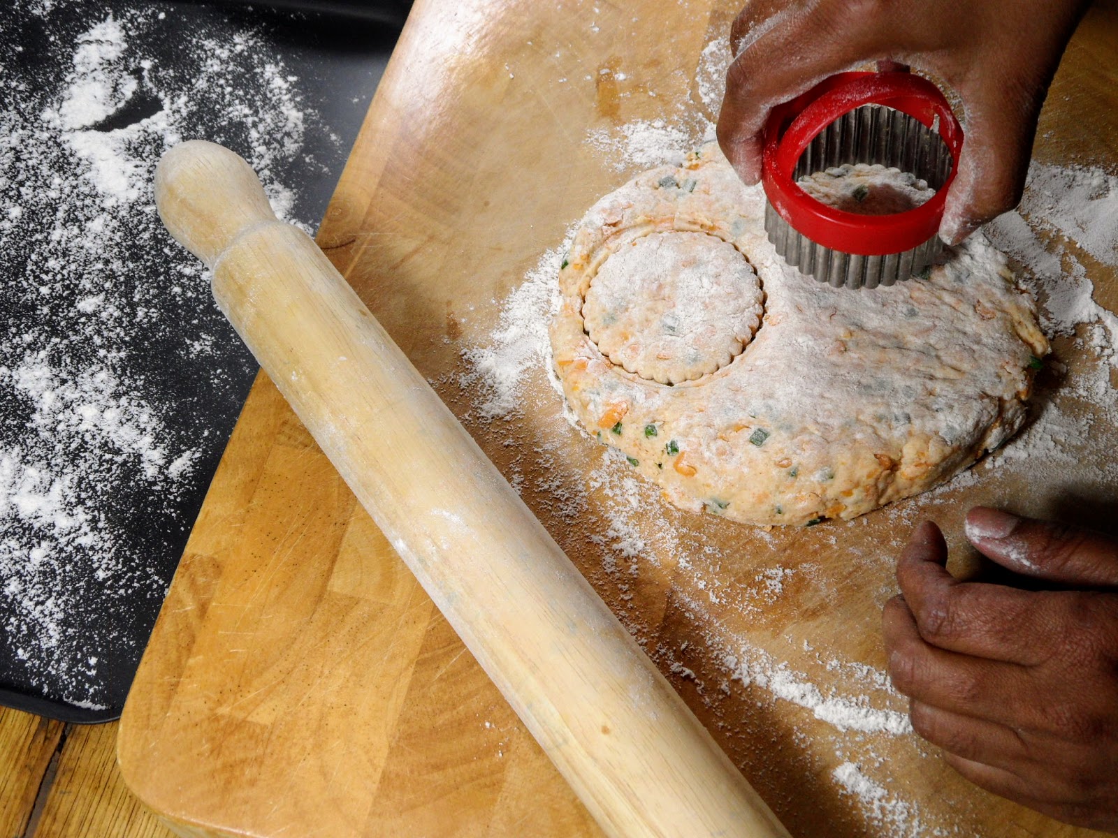 - Roll dough keeping a thickness of 1″ ( 2cm in today’s money) and cut using a fluted cutter.
