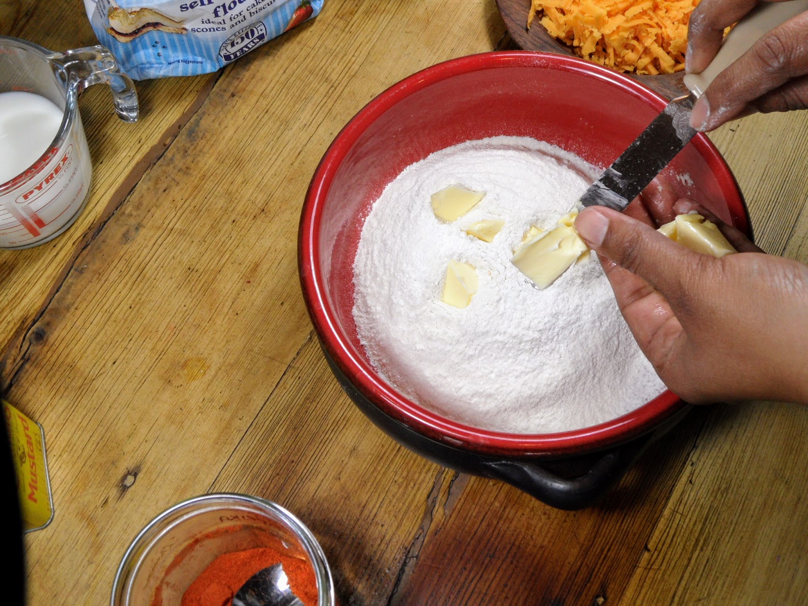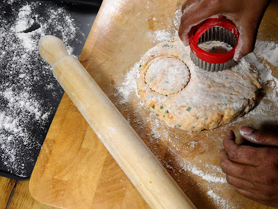 - Place cut scones onto a floured tray, brush with Milk, sprinkle a little more Cheese and Paprika.