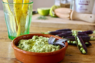 Fresh Pea Hummus with Corn Tortilla Sticks