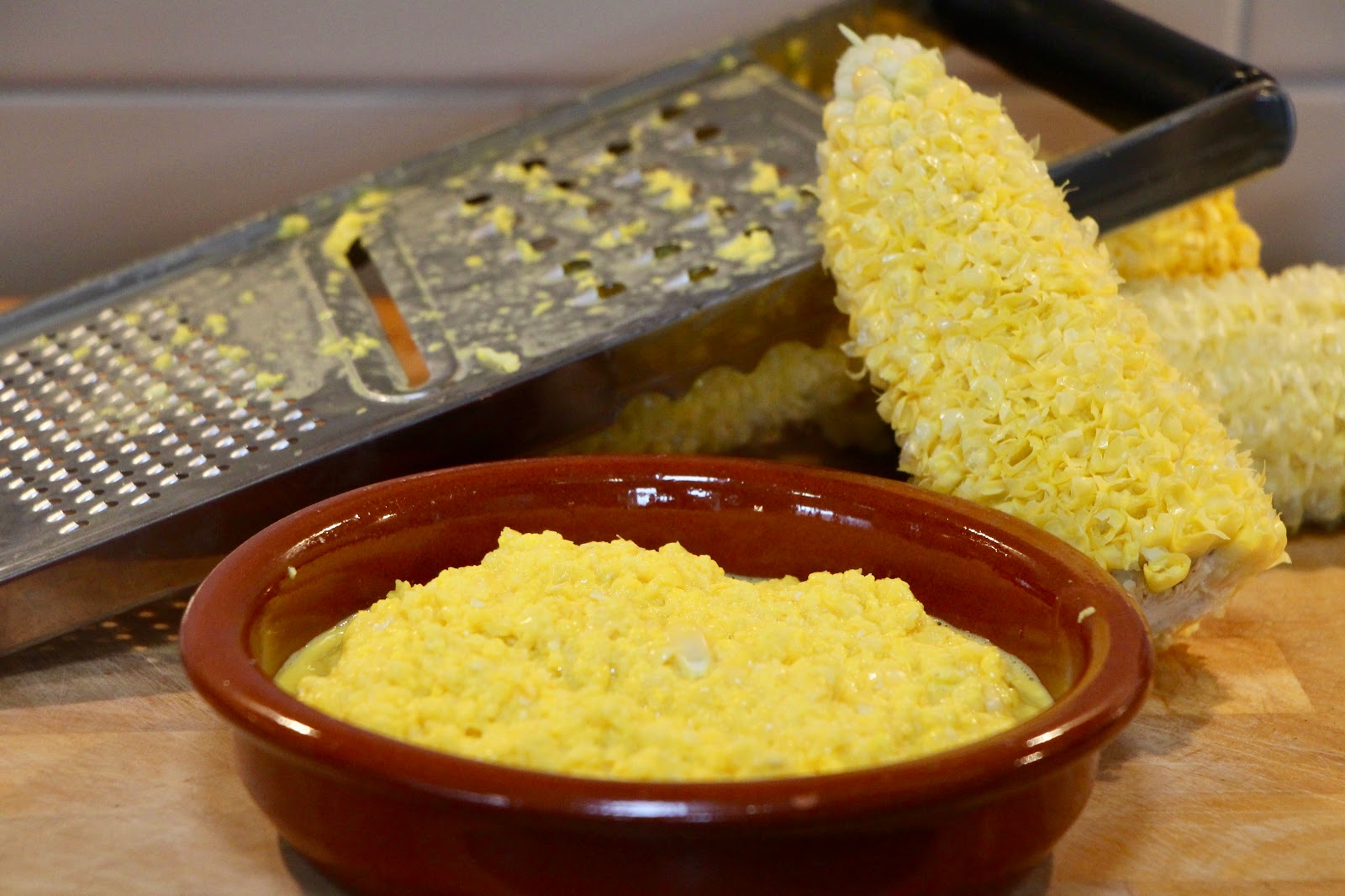 Place a cup of pulped sweetcorn in a bowl, with approximately 3/4 cup course semolina, add a little at a time, making sure the consistency of the pulp does not get to stiff. To this mix, add 1 tablespoon of freshly grated ginger, 1 teaspoon each of finely diced home grown green and red chilli. A heap teaspoon of Cumin powder, 1/4 teaspoon of turmeric powder and half a teaspoon of fine sea salt. Finely chopped fresh Coriander goes very well in this mix, add about 5 stalks worth, and lastly a pinch of Asafoetida. Stir well and allow rest for at least 1 hour at room temperature.