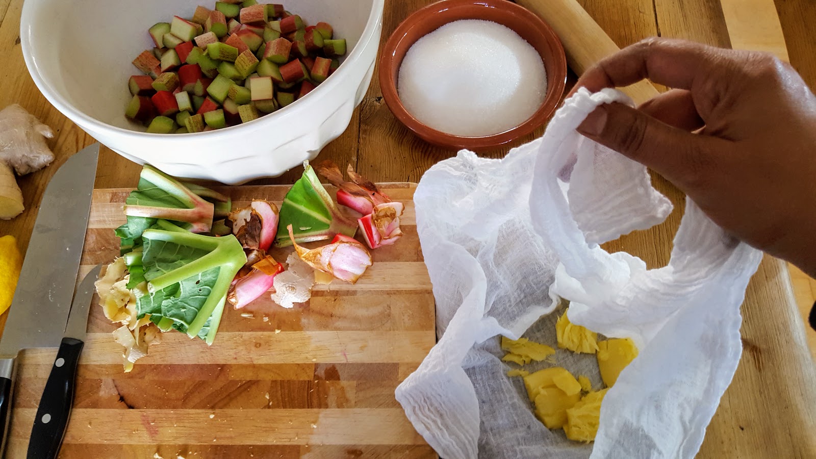 In my version I have used freshly bashed ginger, many recipes call for the preserved ginger in syrup or the candied ginger to be used; still perfectly alright to use, but I wanted to use everything fresh as far as possible.