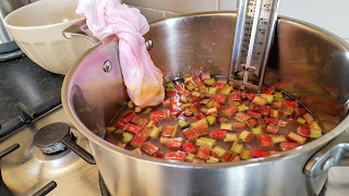 I must say I have seen recipes in books but never actually had or even made Rhubarb Jam. Only one way to find out if I like it or not is to make it and try it; and I must say this Jam will surprise you as it did me, in a good way for sure.