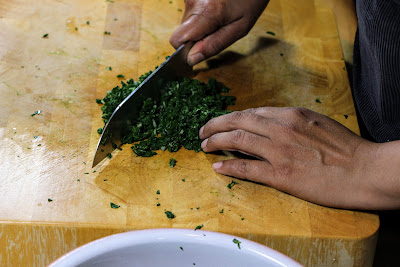 - Roughly Chop the cooled chard and add to a bowl.