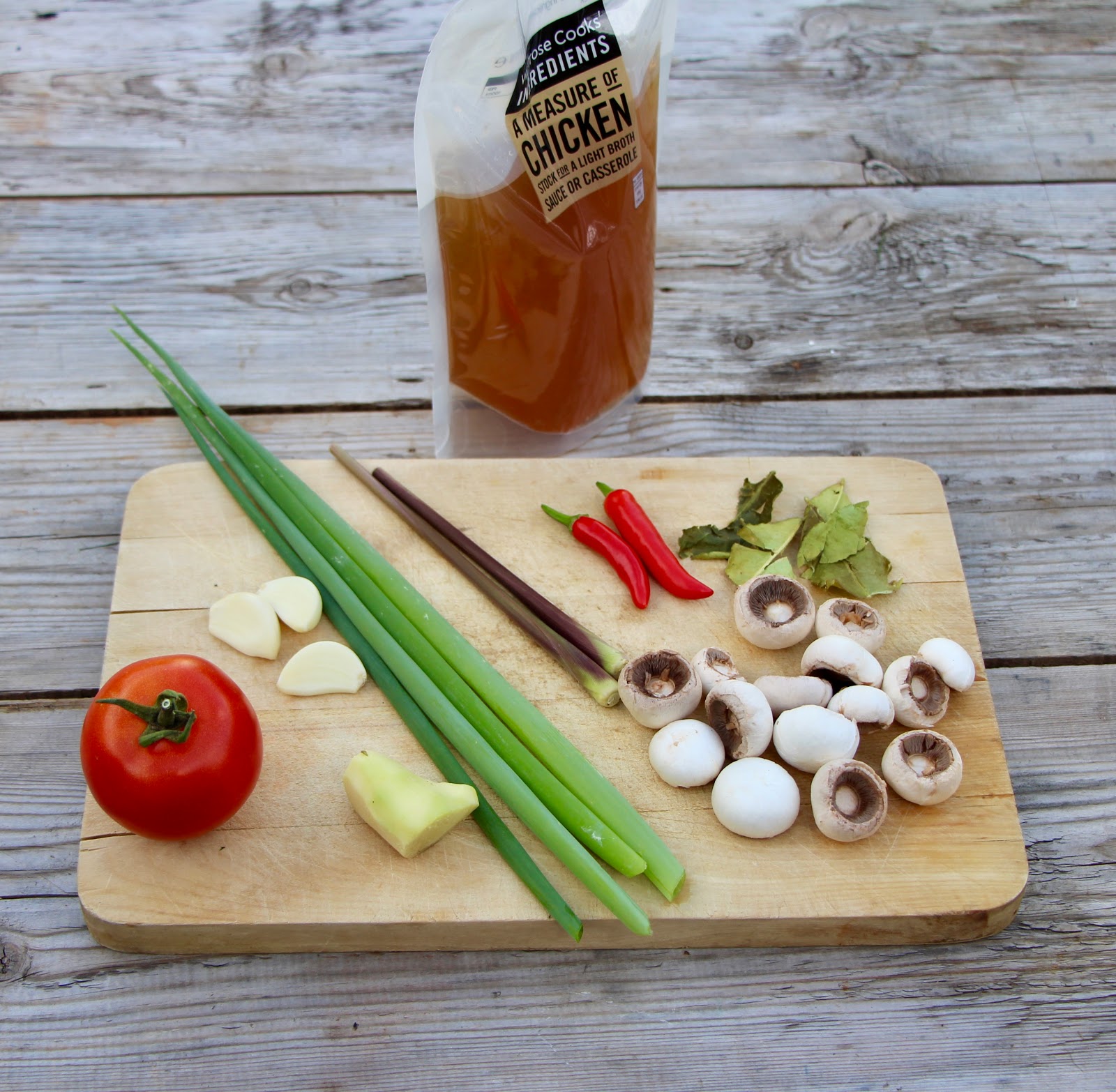 There are 4 ingredients which I think are key to this soup, Lemongrass, Thai Chilli, Kaffir Lime leaves and Galangal.