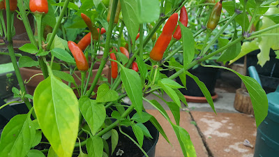 Growing my own Thai chillies from seed, are so much more fiery than shop bought chillies. We have been eating this chilli since early June, whilst in its green form, and even at that stage they were really hot. Using these chillies at the green stage, just puts a smile on my face because I know, as they ripen they only get hotter. I think this year I will have a really good harvest and will freeze majority of them whole and dry a few, with a couple of fruits kept just for seeds for next year. Thanks Thompson and Morgan, its an old packet of seed I had kept, and still managed to raise a plant, a really good seed variety.